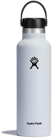 21 OZ WHITE BOTTLE: Fill and refill with the Hydro Flask Standard Mouth insulated water bottle with leakproof cap. With a comfortable, flexible handle, the bottle is easy to grab and take anywhere. Double-wall insulation keeps drinks cold up to 24 hours and hot for 12.