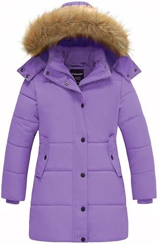 wantdo Girl's Winter Coat Long Puffer Jacket Fleece Parka with Hood Waterproof