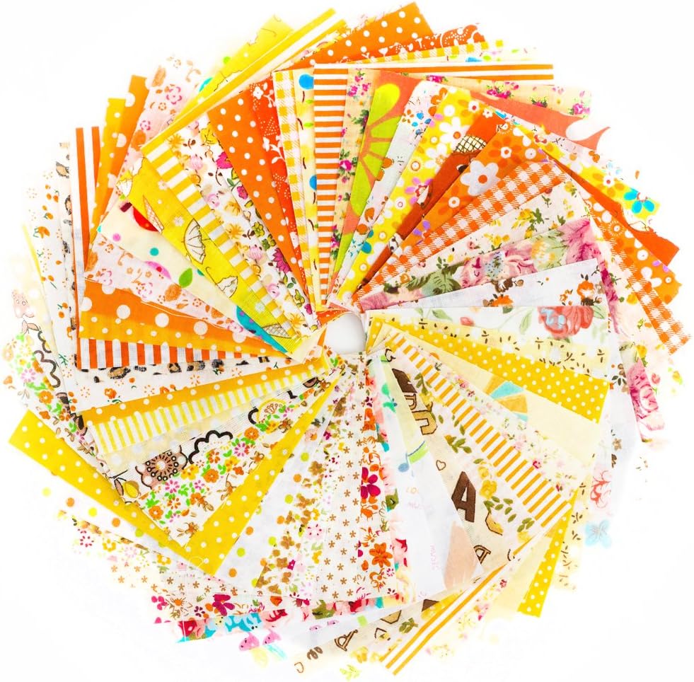 RayLineDo 50pcs 10*10cm Different Pattern Patchwork Fabric Craft Printed Material Mixed Squares Bundle Quilting Scrapbooking Sewing Artcraft DIY Fabric Yellow Series The construction of this fabric is 32s x 32s, 68 x 68, Therefore it is THIN fabric. However it is good for sewing pratice and simple patchwork project.Approx 4 x 4 inches, 10 x 10CM, 50 pieces/pack.Machine cut,very Accuracy. Please note: Machine wash cold, gentle cycle. Tumble dry low. Please do not prewash the fabric.There are many patterns totally, we will send them randomly. Therefore, the patterns you got may be different everytime you purchaes and you may not receive all patterns which be shown in the pictures. However, You can get 50 different designs in one package. As different screen monitor, The fabric's color maybe not completely so bright as picture.The fabric squares are perfect for a range of craft projects, like patchwork, quilting, bag DIY, doll cloth and so on.