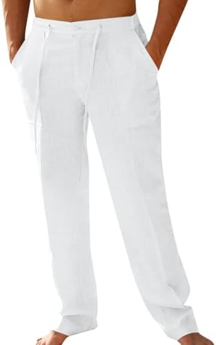 PASLTER Mens Casual Linen Pants Loose Fit Elastic Drawstring Waist Straight-Legs Summer Yoga Beach Long Pants