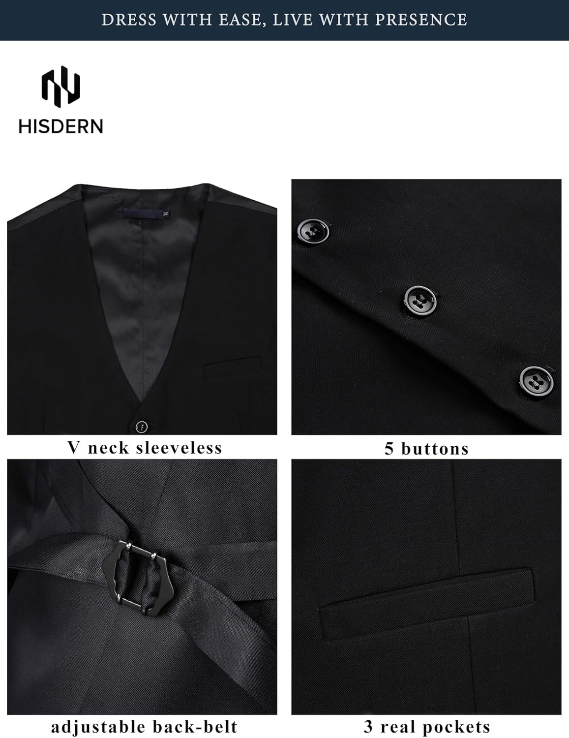 HISDERN Vest 101 Men’s Slim Fit Suit Vest Waistcoat with 3 Pockets for Business Formal Wedding Prom and Casual Tuxedo Wear