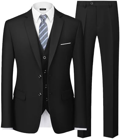 MY'S Men's 3 Piece Slim Fit Suit Set with Tie, 2 Button Blazer Jacket Vest & Pants, Business Wedding Party Prom Suit for Men