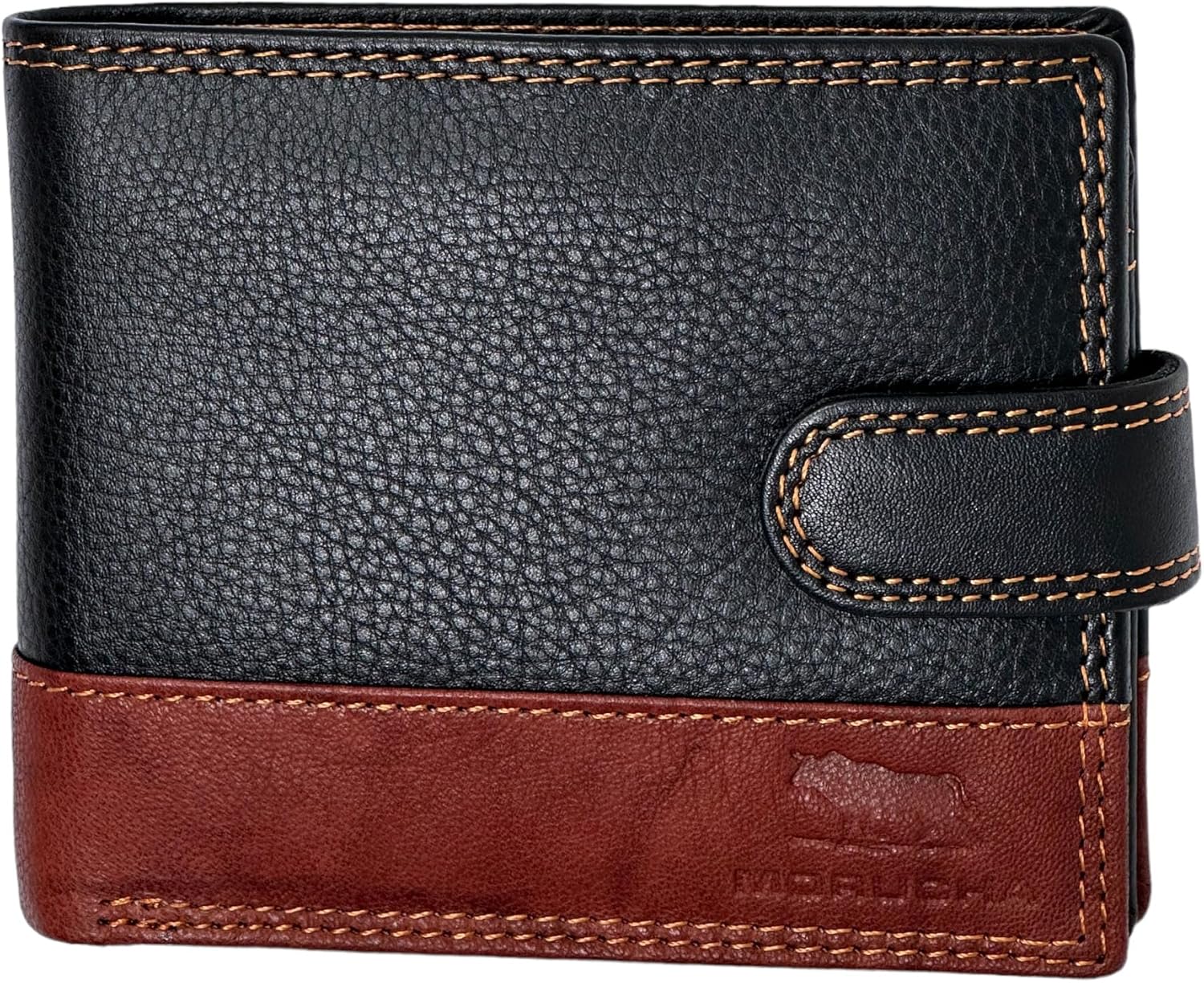 MORUCHA RFID Blocking Genuine Leather Wallet for Men – Slim Bifold Bull Leather Wallet with Coin Pocket, ID Window, 8 Card Slots – Premium Black/Brown Luxury Gift Box (Model #M75)