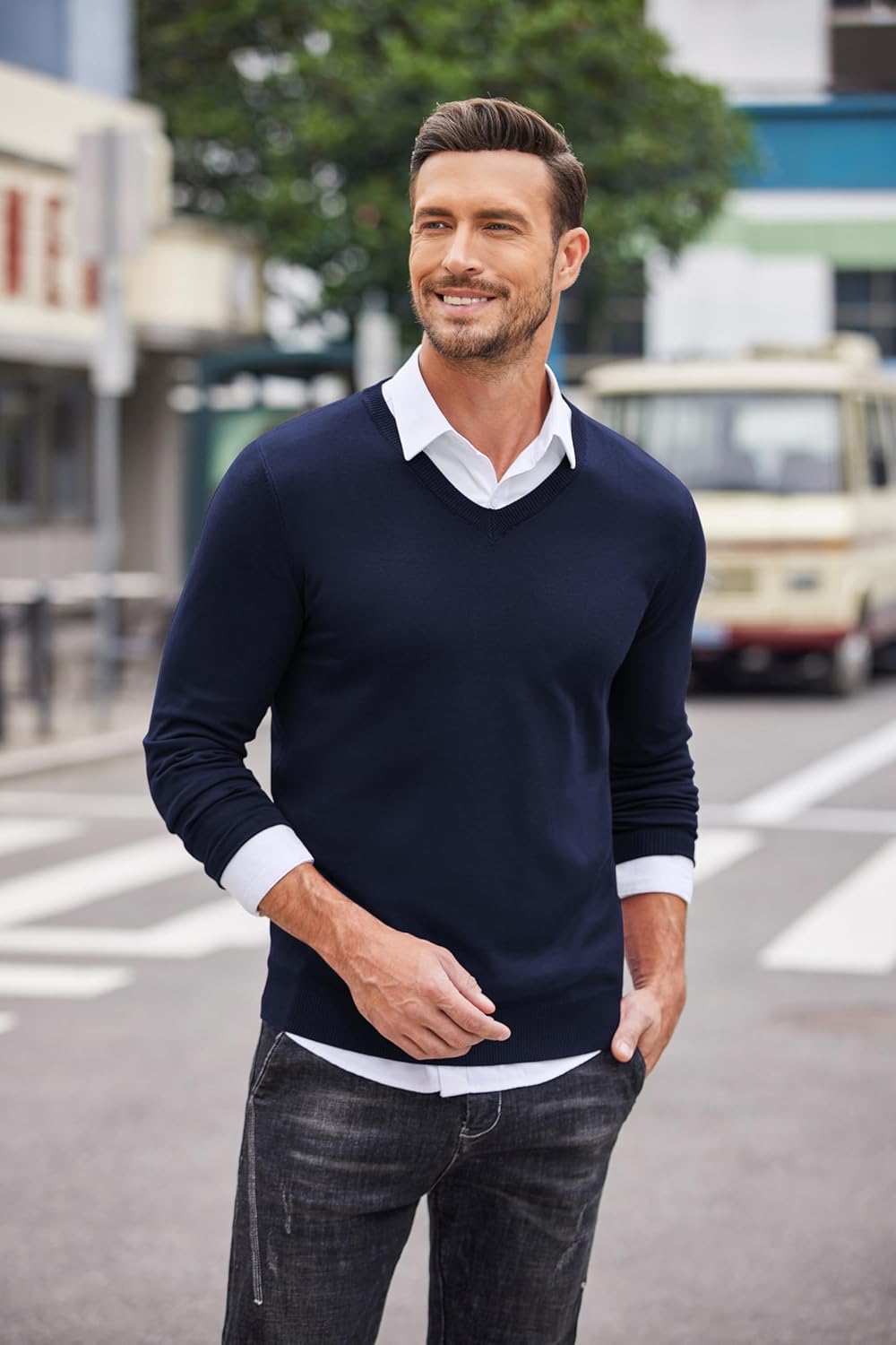 COOFANDY Men Casual V Neck Sweater Ribbed Knit Slim Fit Long Sleeve Pullover Top