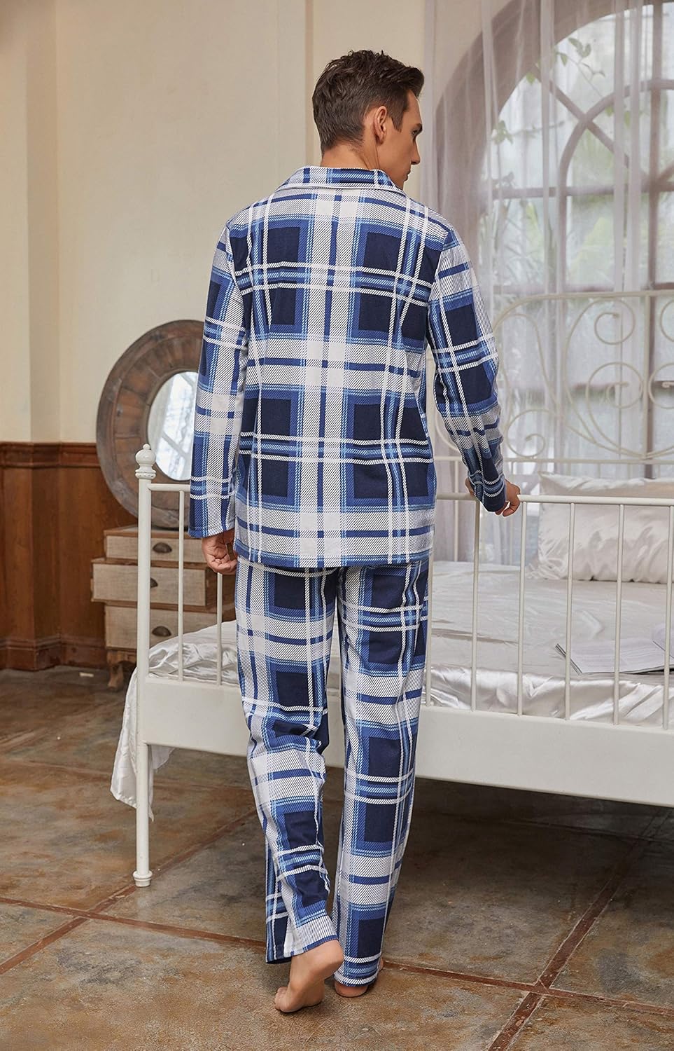 Vulcanodon Mens Plaid Pajama Set, Soft Print Pajamas for Men, Lightweight Warm PJS with Pockets