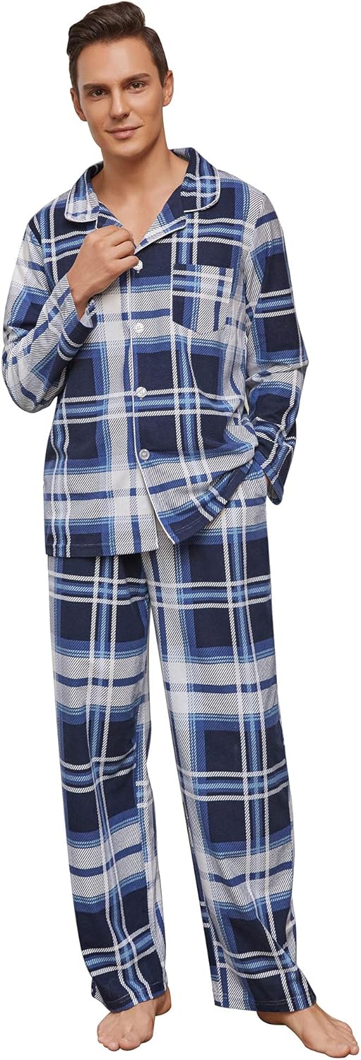 Vulcanodon Mens Plaid Pajama Set, Soft Print Pajamas for Men, Lightweight Warm PJS with Pockets