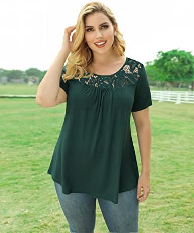 LETDIOSTO Women's Plus Size Tops Casual Blouse Short Sleeve Lace Tunic Tops Fit Flare, L-4XL