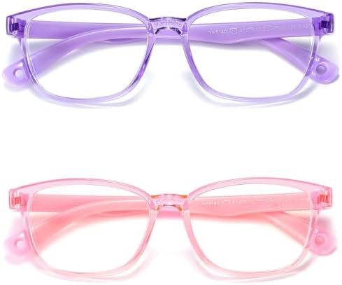 Kids Blue Light Blocking Glasses 2 Pack, Anti Eyestrain & UV Protection, Computer Gaming TV Phone Glasses for Boys Girls Age 3-9 (Transparent Purple+ Transparent Pink)
