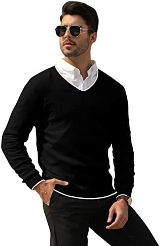 Esobo Men's Cotton V Neck Sweater Knitted Jumper Sweater Long Sleeve Pullover Top
