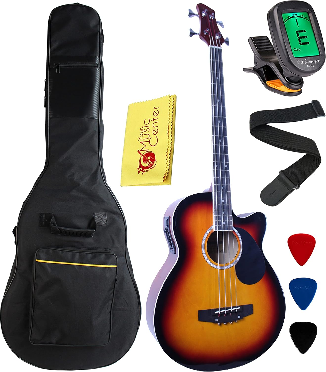 YMC 4 Strings Cutaway Acoustic-Electric Bass Guitar With 4-Band Equalizer, Adjustable Truss Rod,Gig Bag,Strap,Picks- (Sunburst)