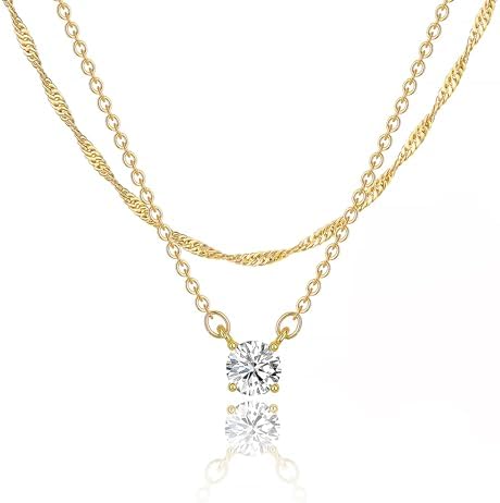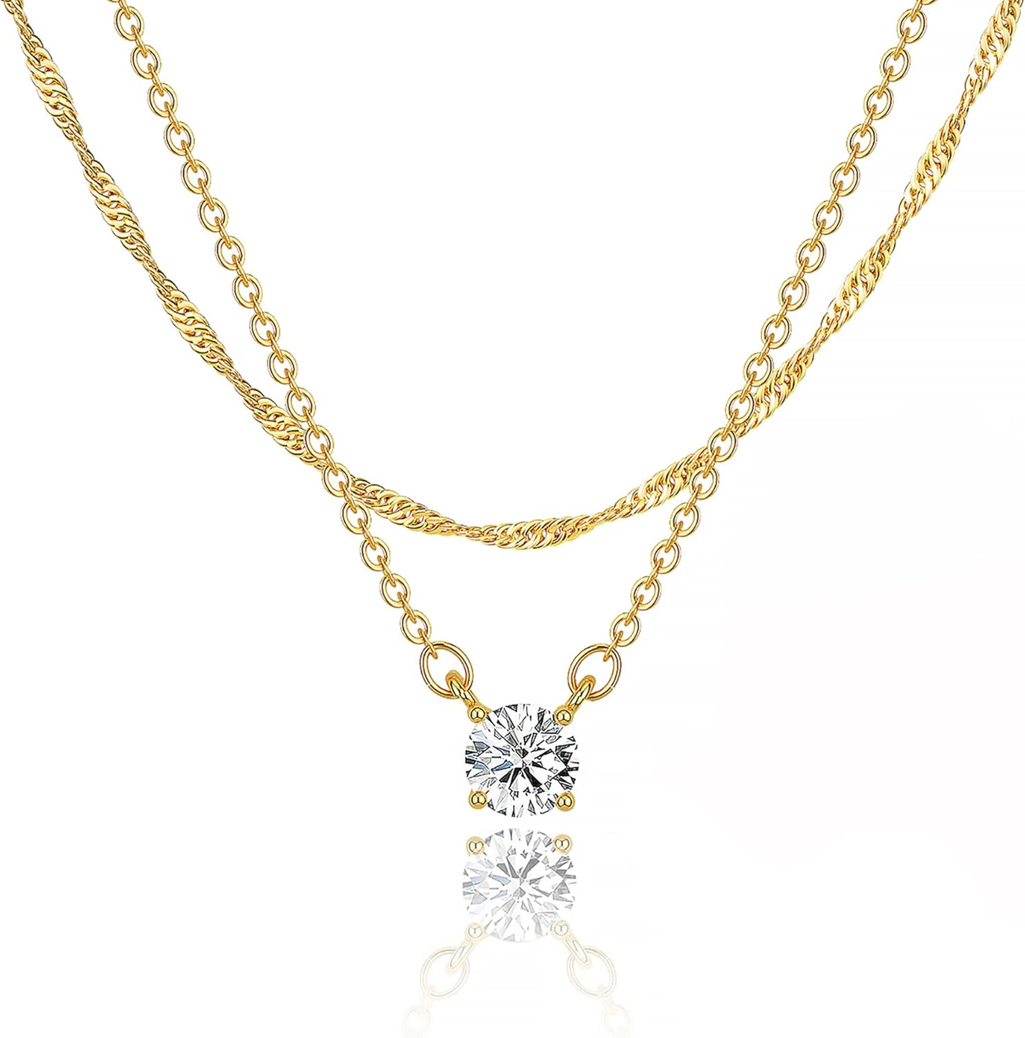 Tewiky Dainty 14k Gold Plated/Silver Cubic Zirconia Necklaces for Women, Simple CZ Jewelry Necklaces Trendy Gifts