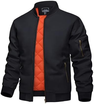 KEFITEVD Men's Jacket Casual Windproof Bomber Jackets Full Zip Windbreaker Warm Winter Padded Coats