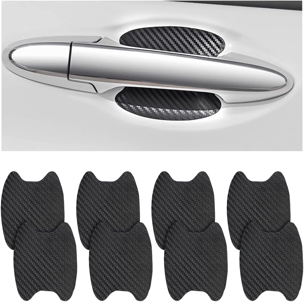 8PCS Car Door Handle Sticker, Carbon Fiber Anti-Scratches Car Door Cup Protector, Non-Marking Auto Door Handle Protective Film, Self-Adhesive Door Side Paint Protector for All Cars (Black/8PCS)