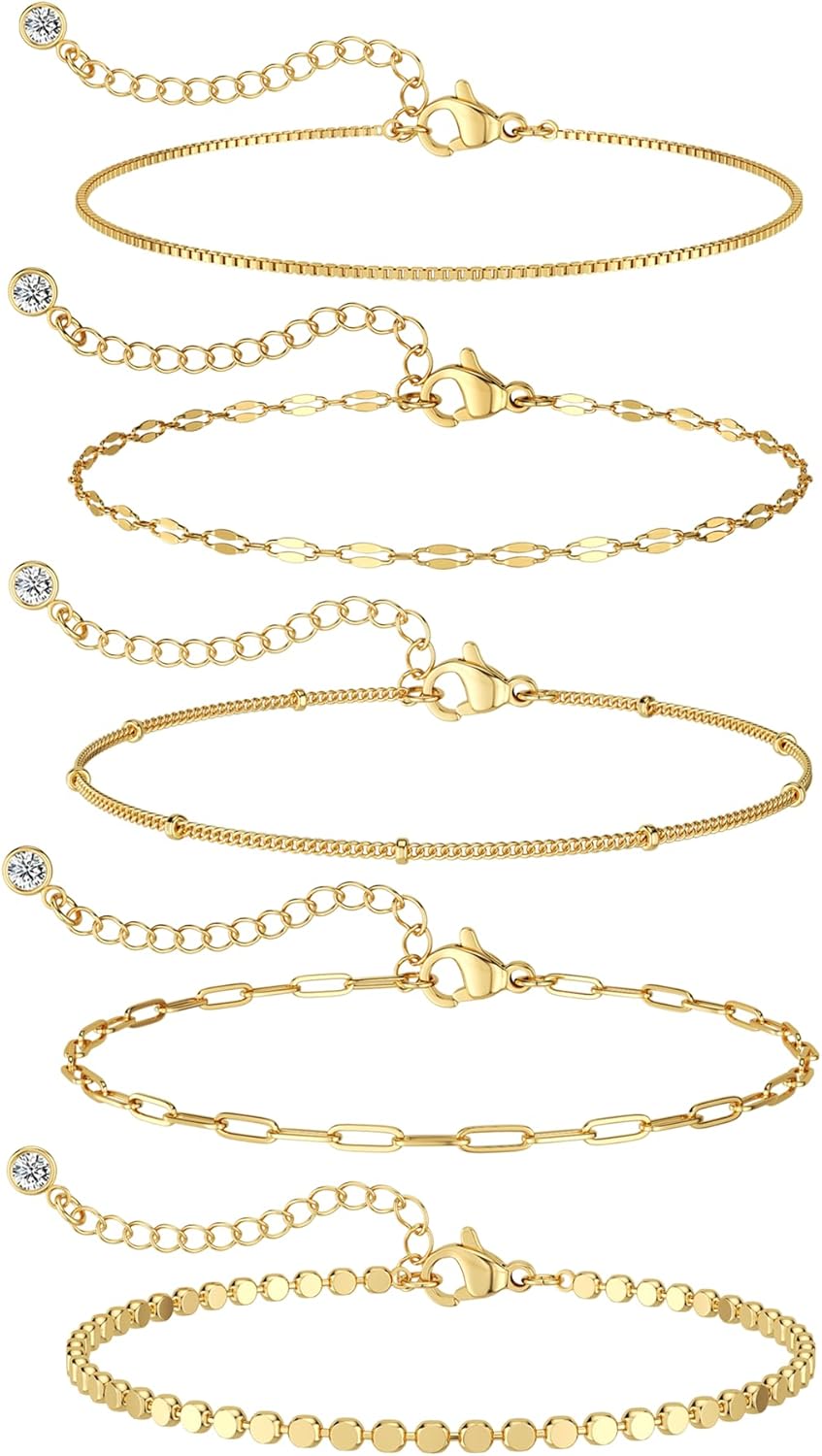 MBW Gold Bracelets for Women Trendy, Dainty 14K Gold Plated Bracelet Stack Beaded Chain Bracelet Set Thin Small Cute Paperclip Bracelets Fashion Waterproof Jewelry Gift Gold Accessories for Women