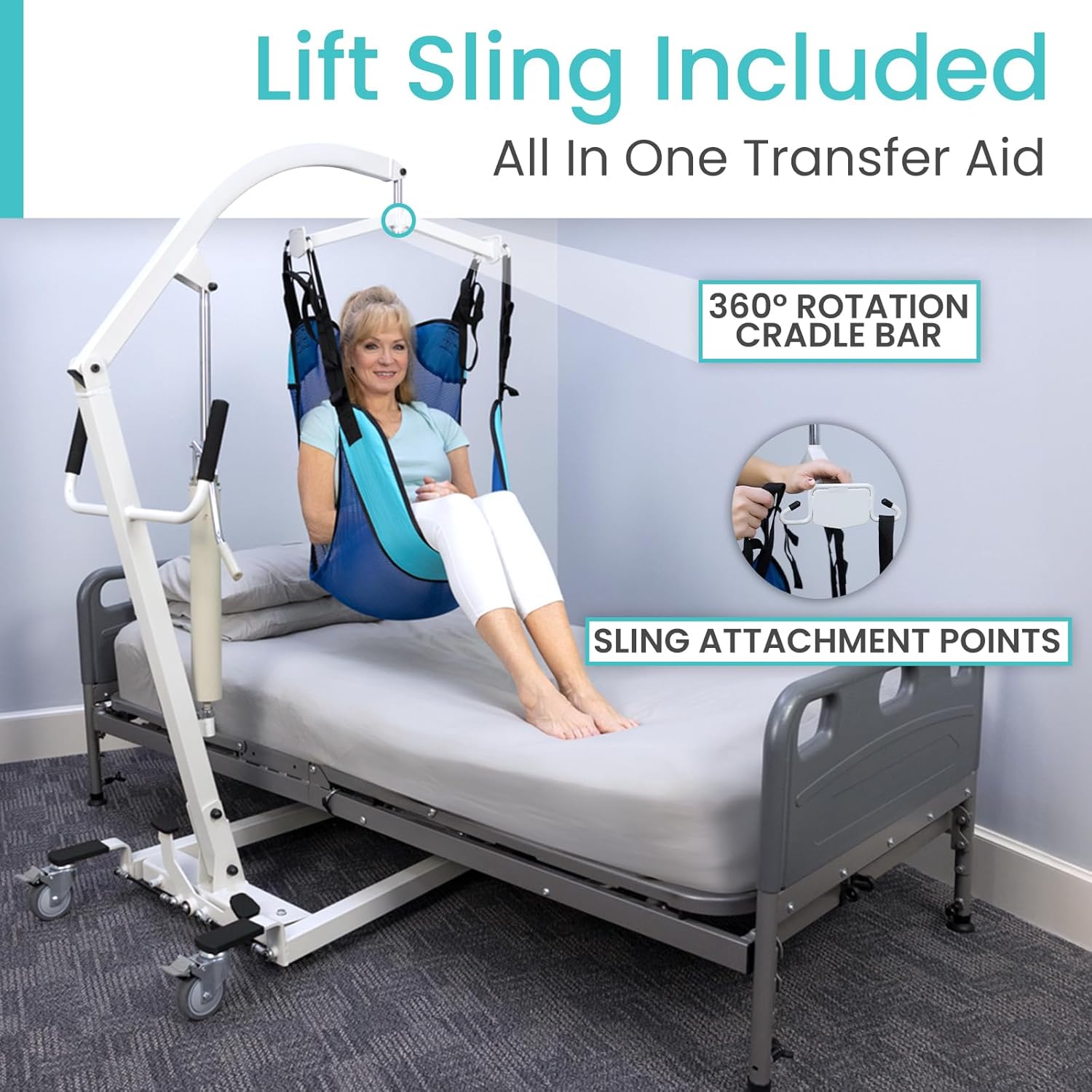 CUSTOMIZABLE COMFORT WITH INCLUDED SLING: Enhance patient handling with the machine-washable sling, designed for easy attachment with four secure anchor points. The lightweight mesh material of the transport sling is breathable and water-resistant, for continued use. This versatile sling also features three additional handles, for more precise positioning and targeted patient care.