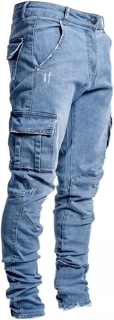 ABSECAI Mens Fashion Slim Fit Skinny Hip Hop Cargo Straps Jeans