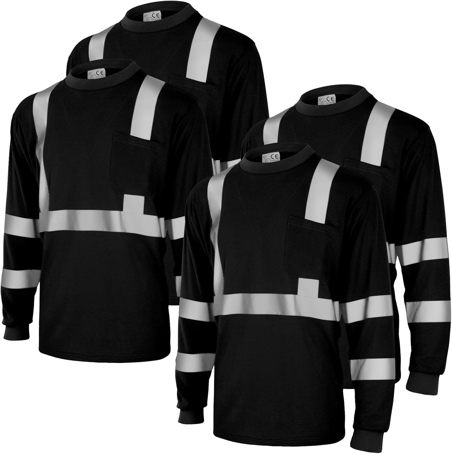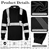 Amylove 4 Pcs Long Sleeve Safety Shirt High Visibility Reflective Construction Work Shirts for Men Women(XL,Black)
