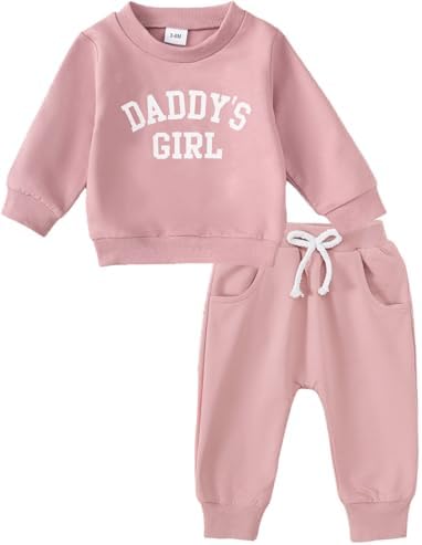 Yvowming Baby Girl Clothes Daddy’s Girl Long Sleeve Sweatshirt Pullover Tops + Joggers Pants Fall and Winter Outfit Set