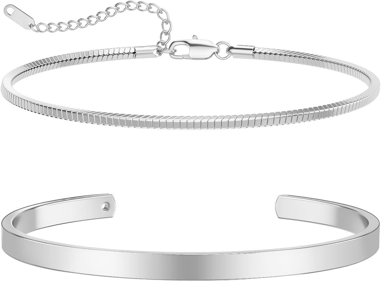 Moodear Stackable Bracelets for Men - Dainty 925 Sterling Silver/14K Gold Plated Cuff Snake Box Cuban Link Chain Bangle Bracelet Set Mens Jewelry