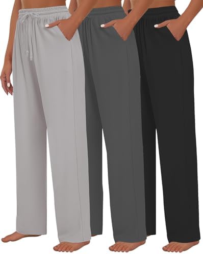 3 Pack Womens Yoga Sweatpants Wide Leg Lounge Pajamas Pants Drawstring Workout Comfy Joggers Sweatpants Pants Pockets