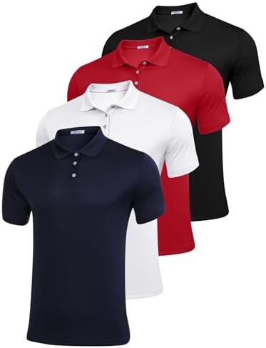 PINSPARK 4 Pack Golf Polo Shirts for Men Multipacks Quick Dry Short Sleeve Collared Shirt Slim Fit Casual Polos Shirt