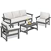 SERWALL HDPE Patio Conversation Set, 6-Piece Sectional Outdoor Furniture Set, All Weather Outdoor Couch Set Patio Furniture Set for Deck, Lawn, Grey Frame with Khaki Cushion