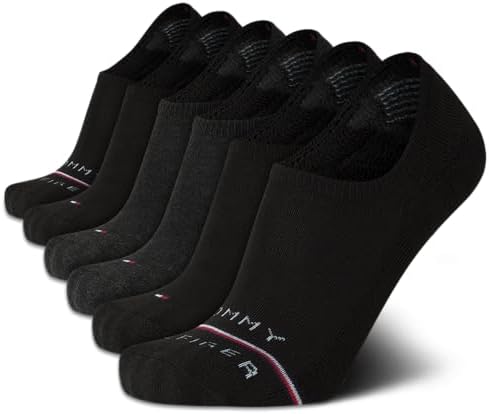 Tommy Hilfiger Mens No Show Socks - 6 Pack Cotton Blend Stretch Soft Cushioned Casual Athletic Sports Liners Low Cut Socks
