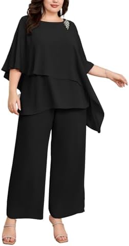 Hanna Nikole Plus Size Mother of Bride Pant Suits 2 Piece Chiffon Sets Ruffle Layers Wedding Guest Outfit