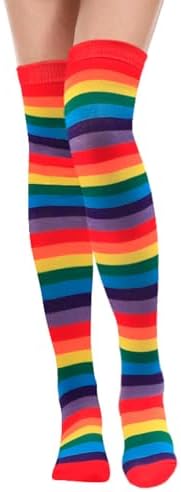 Rainbow Socks - Knee High & Thigh High, Striped Design