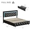 BarnFurin Full Size Bed Frame with LED Lights, Upholstered Bed Frame with Storage Drawers, Modern Platform Bed with Diamond Headboard and Footboard, No Box Spring Needed, Black