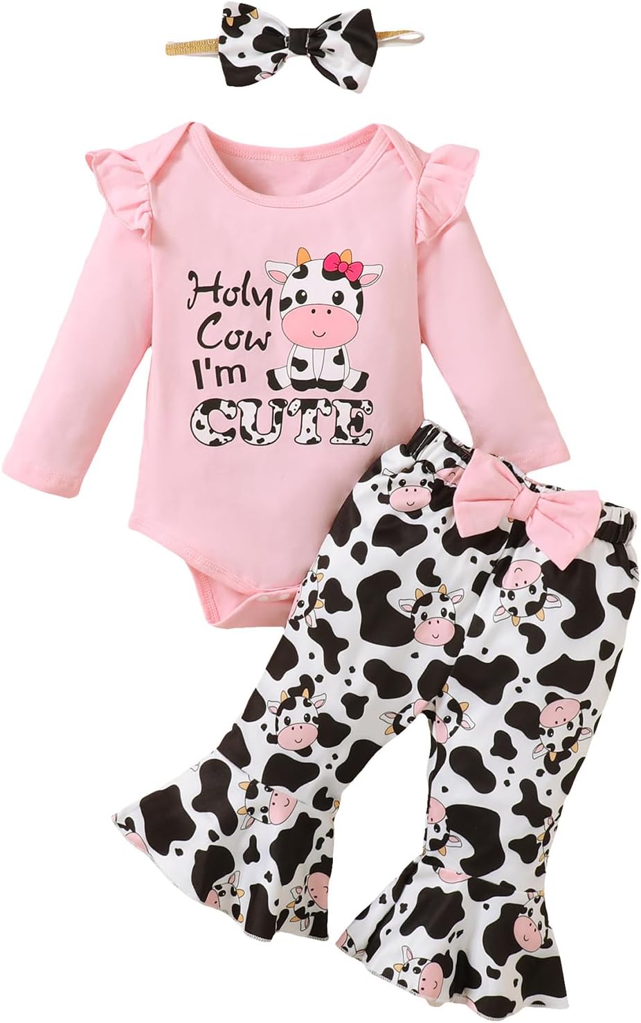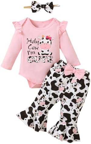 Baby Girl Cow Print Outfit Infant Cow Clothes for Girls Baby Bell Bottom Outfit Sets