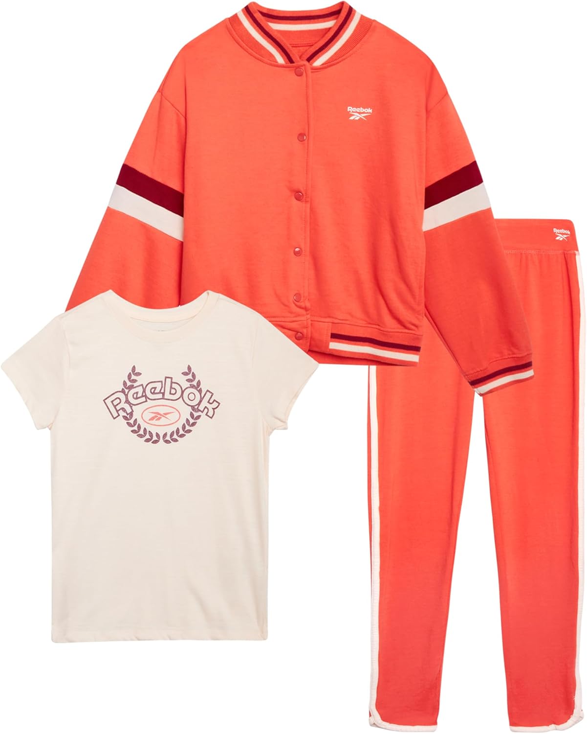 Reebok Girls Sweat Suit Set - 3 Piece Matching Set with Short Sleeve Graphic Tee Sweatpants and Hoodies for Teen Girls