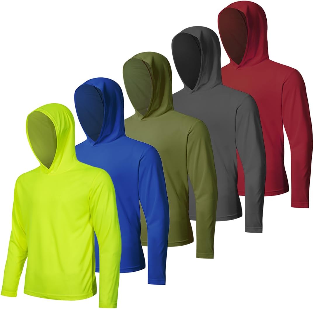 5 Pack Men's UPF 50+ Sun Protection Hoodie Shirts Long Sleeve Shirts Quick Dry Lightweight for Running Workout Hiking Fishing