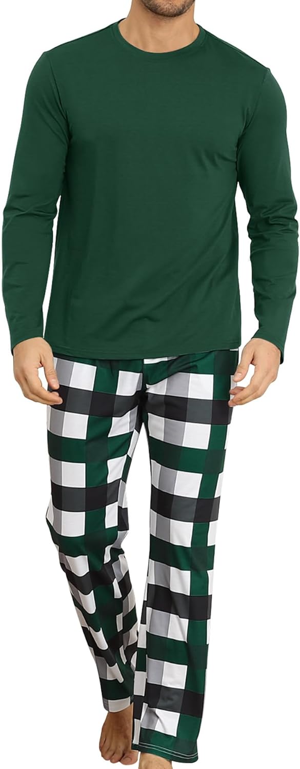 KUYIGO Men 2 Piece Pajamas Set Plaid Sleepwear Loungewear Nightwear PJ Sets
