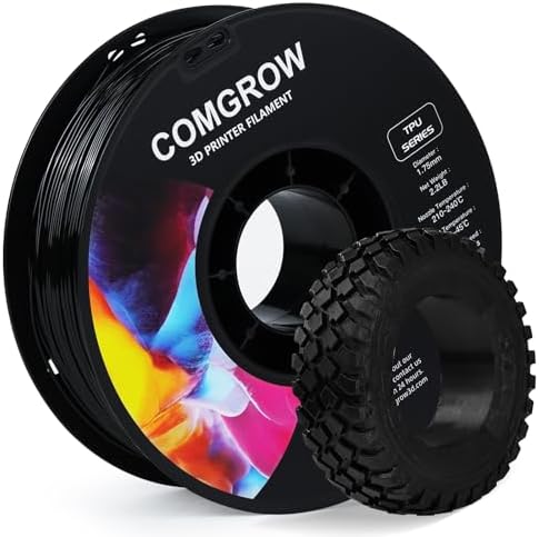 Comgrow TPU Filament, 1.75mm, 95A Soft TPU Flexible 3D Printer Filament Black 1kg (2.2lbs), Dimensional Accuracy +/- 0.02 mm, Fit Most FDM Printer