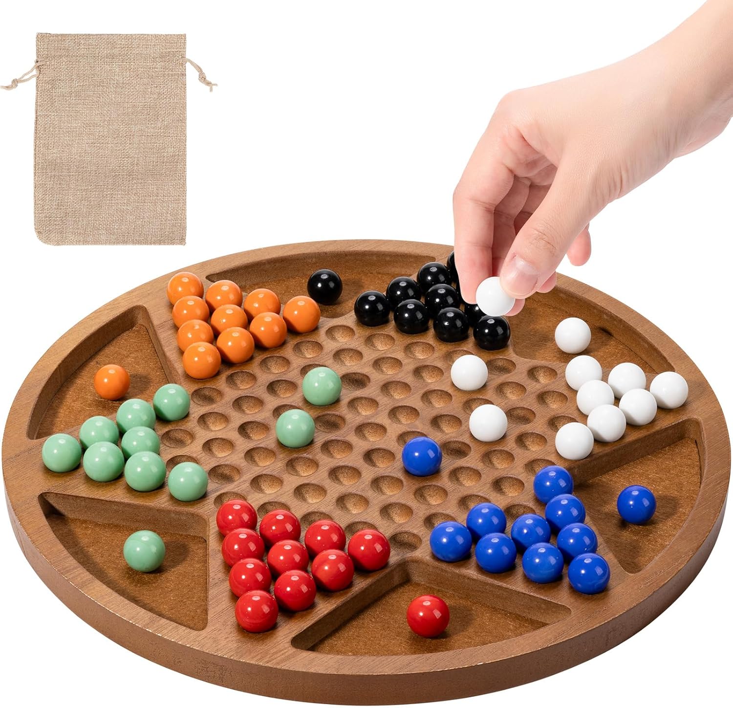 Premium Craftsmanship: Our Chinese Checkers board is meticulously crafted from high-quality wood, ensuring durability and a smooth, polished finish that enhances your gaming experience.
