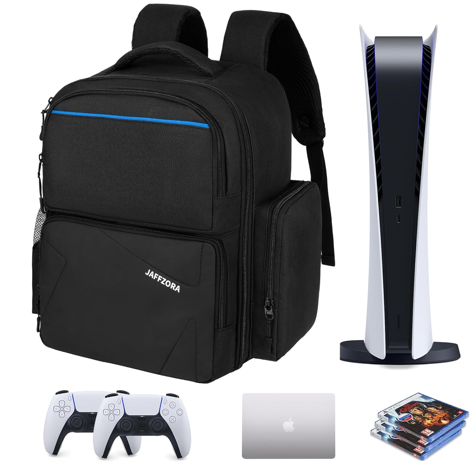 Wide Compatibility: Compatible with PS5 PRO/PS5/PS5 Slim/PS4/PS4 Slim, this travel backpack fits for PS5 is designed to accommodate various gaming consoles. And an inner padded sleeve can hold 15.6’’ laptop.