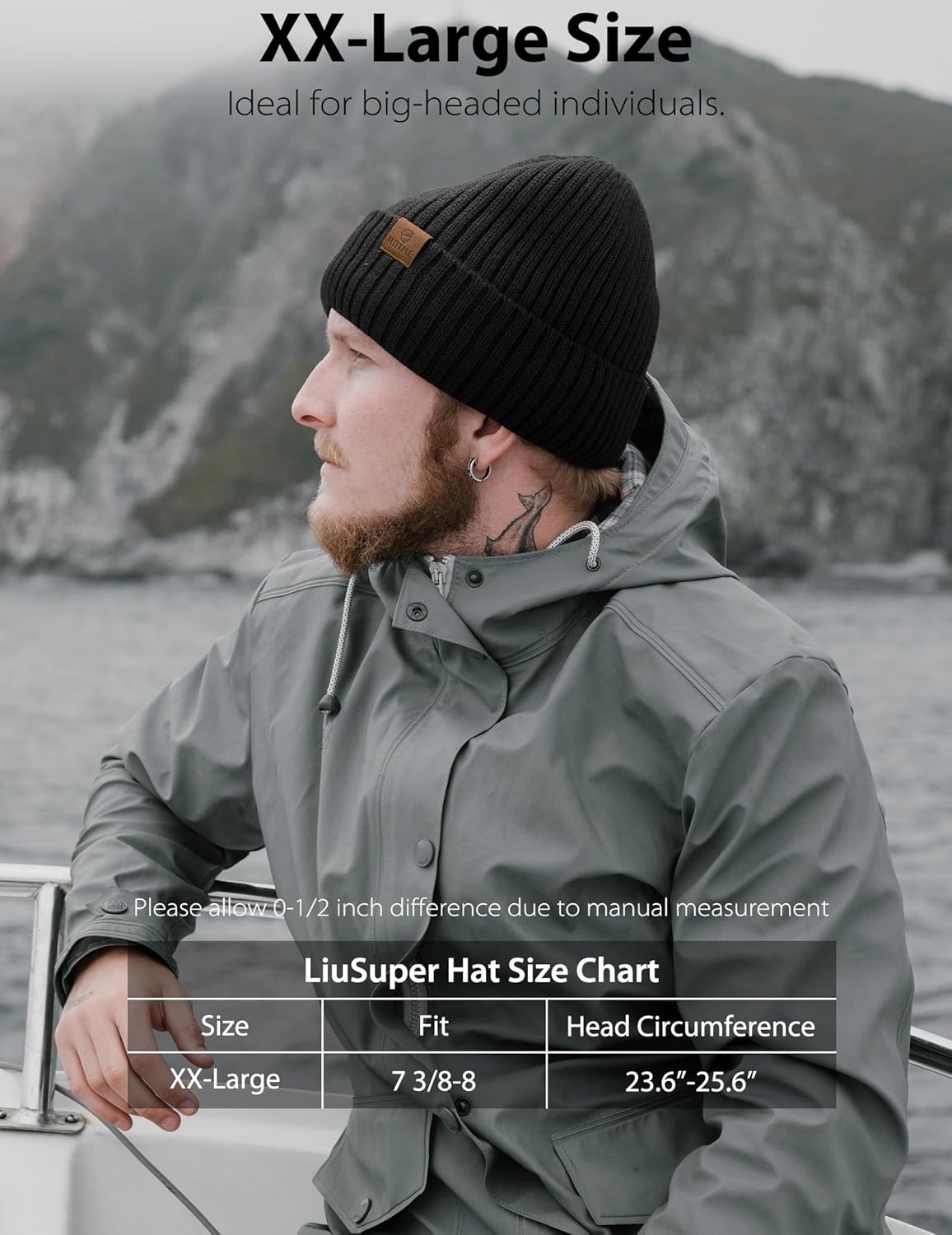 LiuSuper XXL Oversized Beanie Hat for Men and Women, Extra Large Warm Winter Cap for Big Heads, Lined & Stretchy