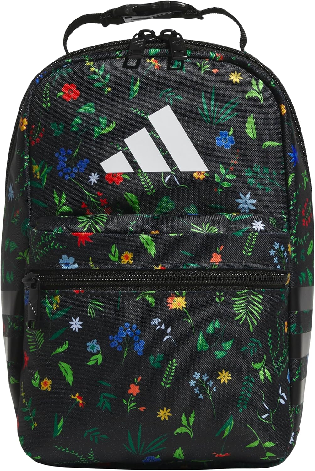 adidas Santiago Lunch Bag Cooler for Women and Men, Insulated Food Container Box with Mesh Pocket, Meadow Floral Black/Black/White/3.0, One Size