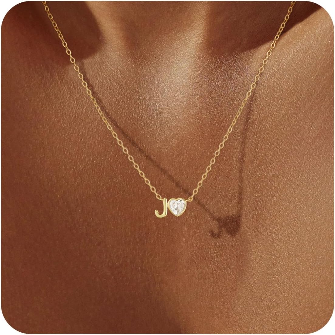 BERISO Gold/Silver Heart Initial Necklace for Women,14K Gold Plated CZ Heart Letter Pendant Necklace