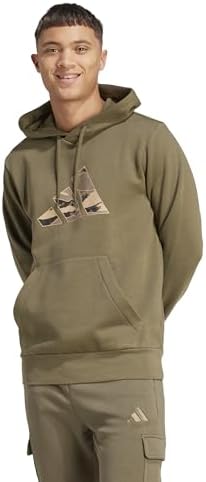 This adidas camo graphic hoodie blends classic comfort with a bold twist, featuring a multicolor graphic that stands out. The fleece fabric delivers a soft, cozy feel, while the drawcord-adjustable hood allows for a personalized fit. A kangaroo pocket offers easy storage for small essentials. Designed in a regular fit, this pullover hoodie is made from 60% cotton and 40% recycled polyester.