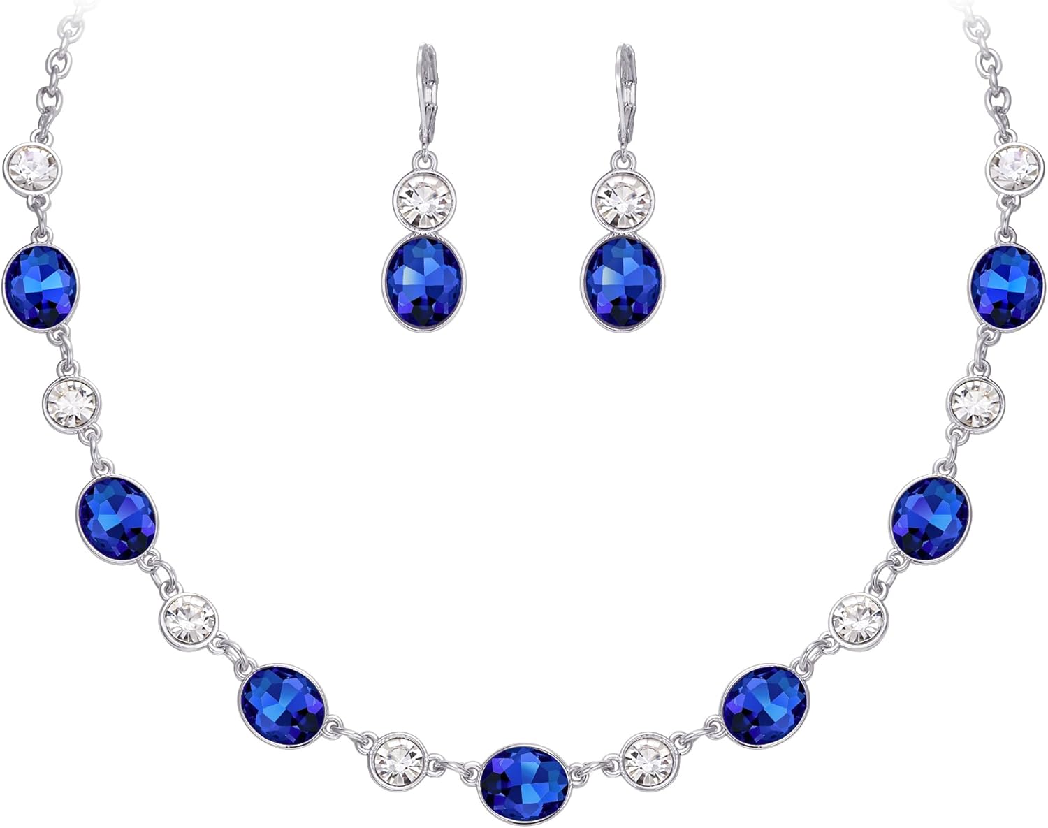 Crysdue Bridal Wedding Jewelry for Women Oval Teardrop Rhinestone Crystal Collar Necklace Pierced Dangle Earrings Set for Prom Party