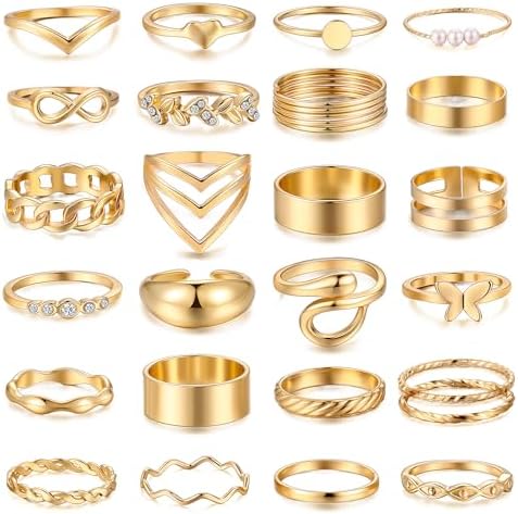 iF YOU 25 Pcs Gold Knuckle Ring Set for Women, Chunky Stackable Finger Midi Rings, Silver Simple Stacking Cute Rings Pack Trendy Stuff Jewelry Gift