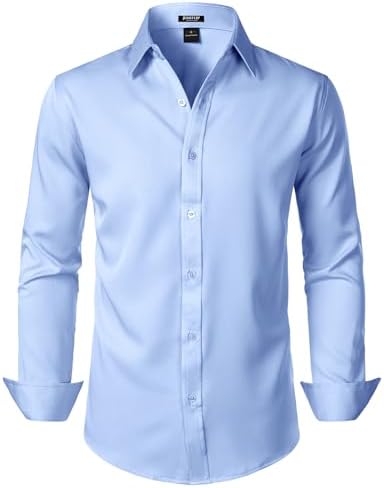 JEMITOP Men's Stretch Soft Slim Fit Dress Shirts Long Sleeve Formal Wedding Business Casual Button Down Shirt