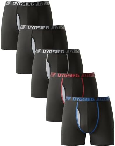 OYGSieg Men's Boxer Briefs,Fly with Built-in Total Support Pouch Moisture-Wicking Odor Control Cool Underwear for Men 5-Pack
