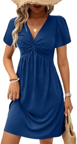 Acelitt Womens Casual Summer Twist Front V Neck Short Sleeve Mini Dress, S-XXL