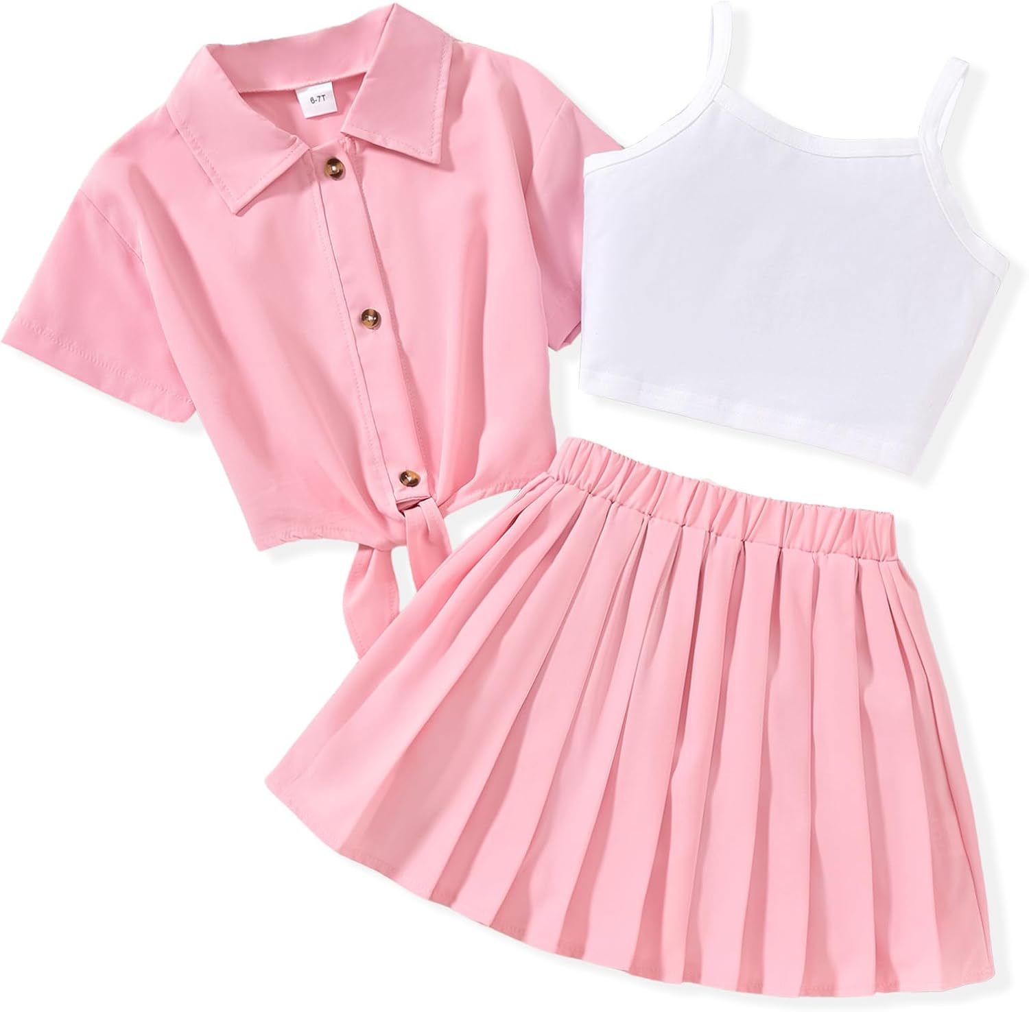 HIHA Girls 3 Piece Outfit Cami Crop Tops Skirt Set with Button Down Shirts Size 6-12