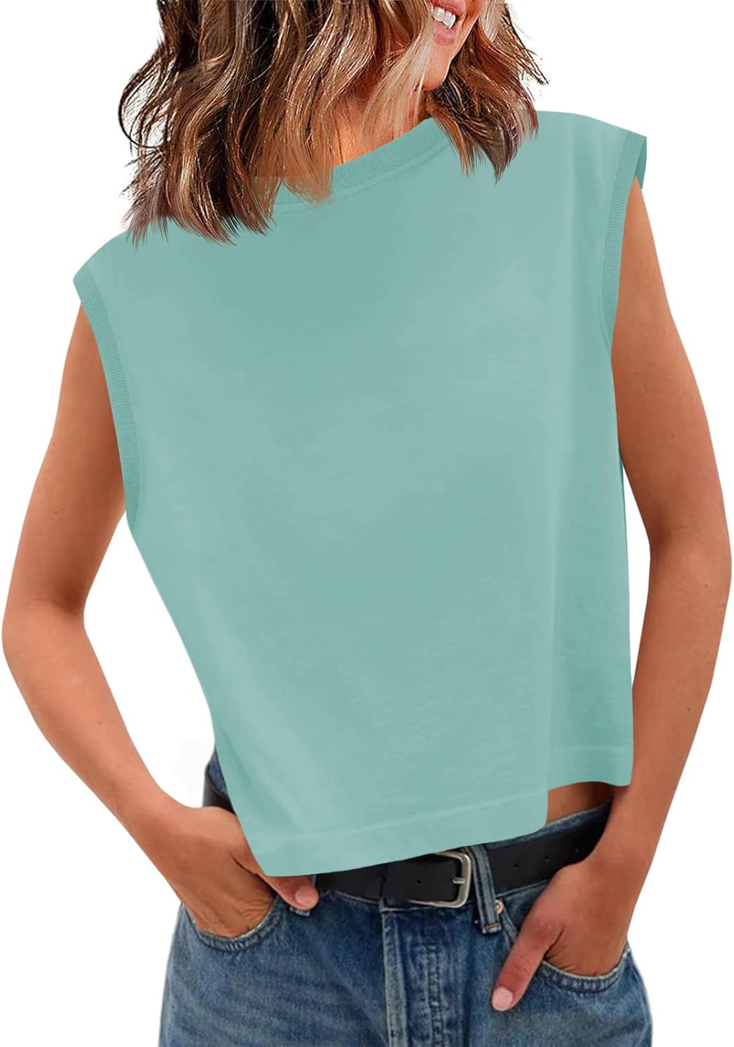 Tankaneo Womens Cropped Cap Sleeve Tank Tops Summer Casual Loose Fit Basic Tee Shirts
