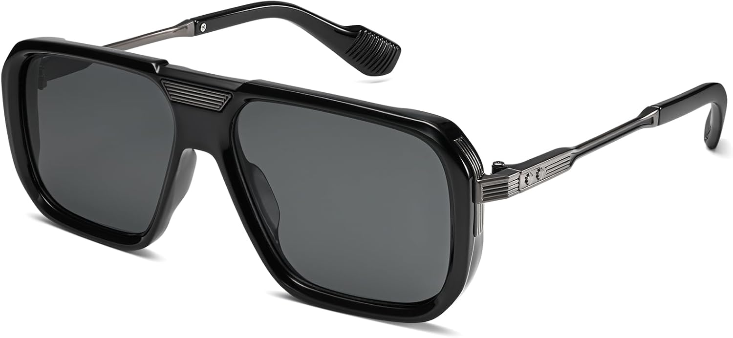 Square Aviaor Sunglasses for Men Fashion Trendy Gold Metal Frame Punk Retro Cool Shades
