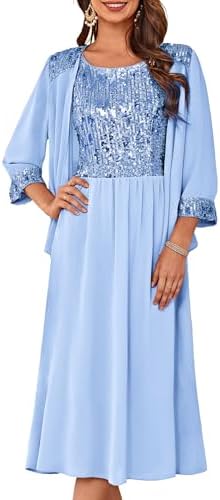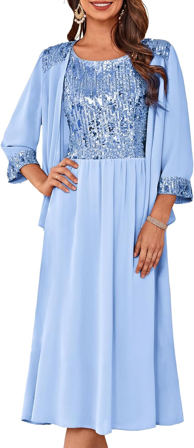 GRACE KARIN Wedding Guest Dress Mother of The Bride Dresses Two Piece Formal Sequin Dress with Jacket Tea Length 2025